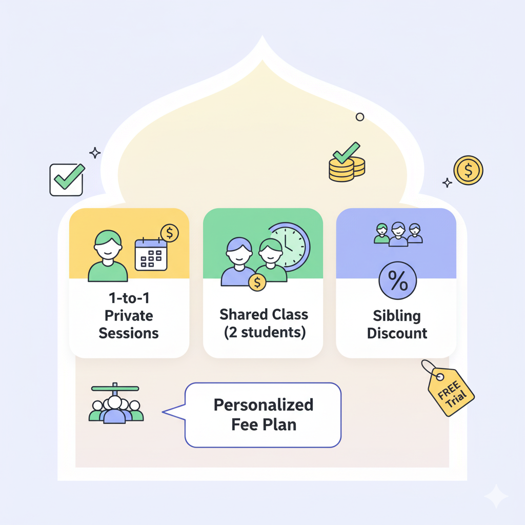We offer a one-month free trial for all new students to experience our teaching before enrolling. Our pricing is competitive and reasonable, designed to suit every learner’s needs. Fees vary based on the type of class; whether it’s a 1-to-1 private session or a shared class with another student and the number of lessons per week. We also provide special discounts for siblings. The more siblings enrolled, the greater the discount. As our pricing structure can vary depending on these factors,